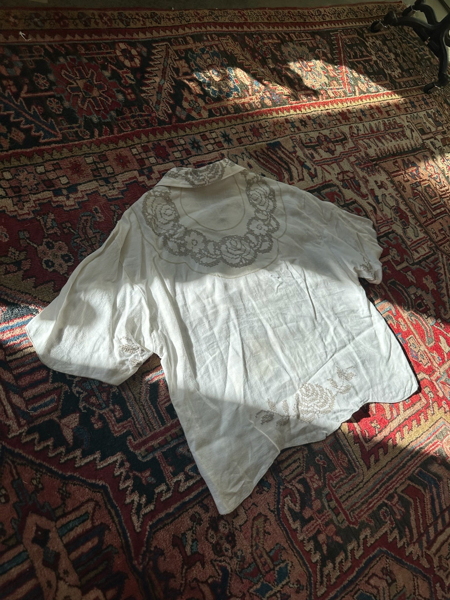 Dodgers Jersey made from a recycled tablecloth and baseball jersey.