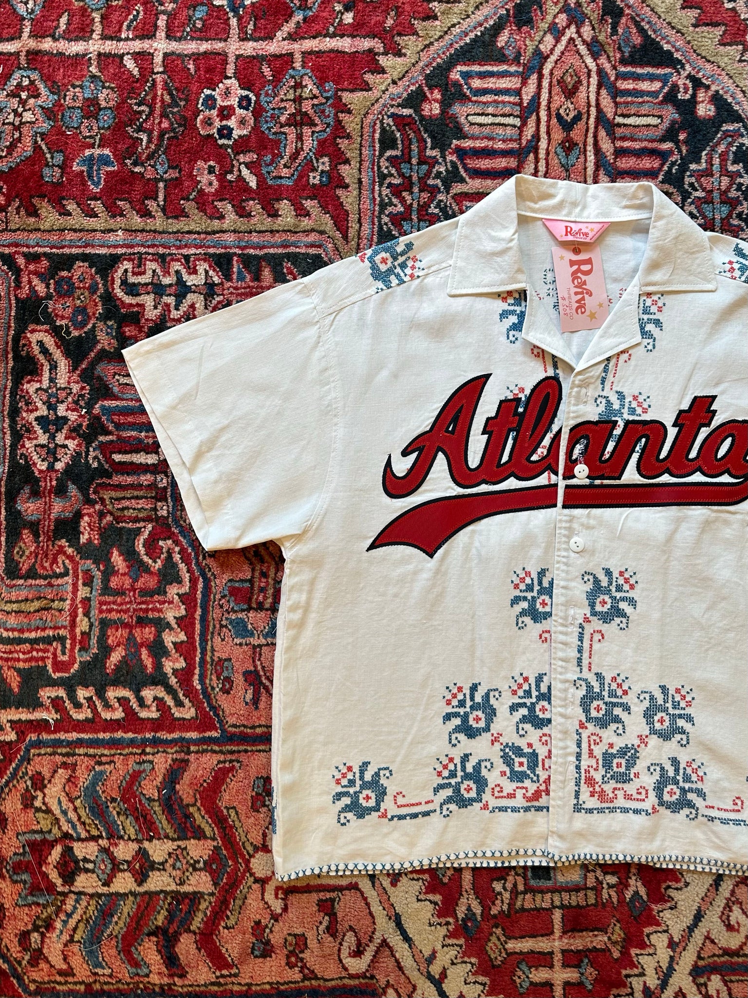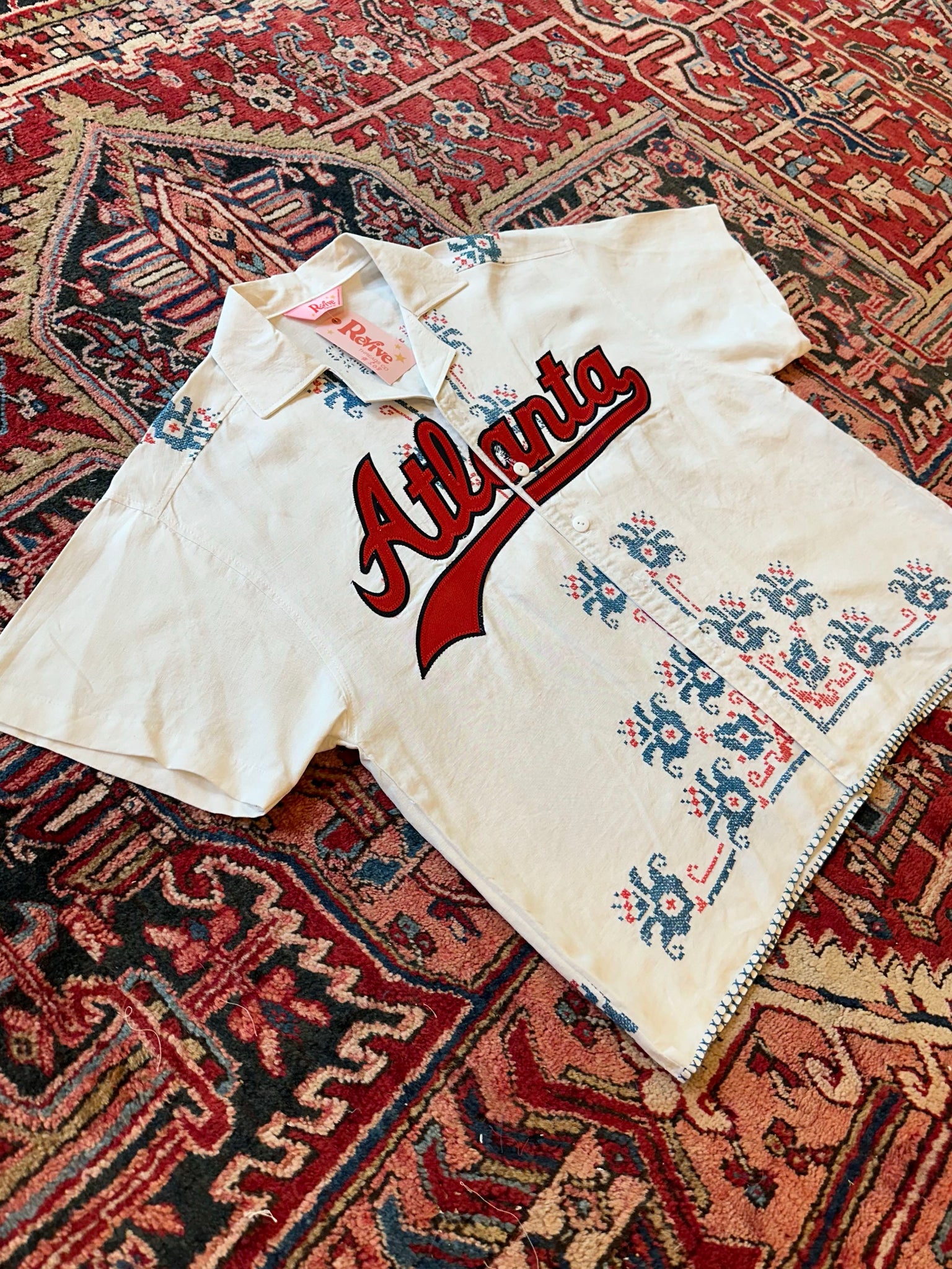 Atlanta Jersey made from a recycled tablecloth and baseball jersey.