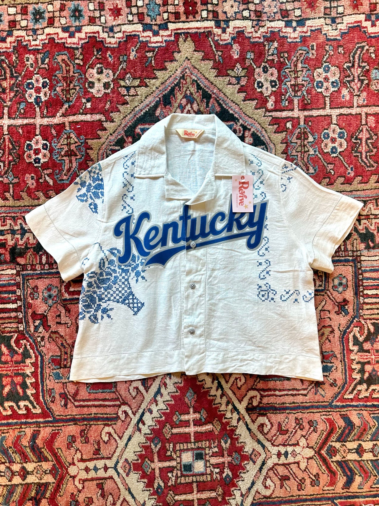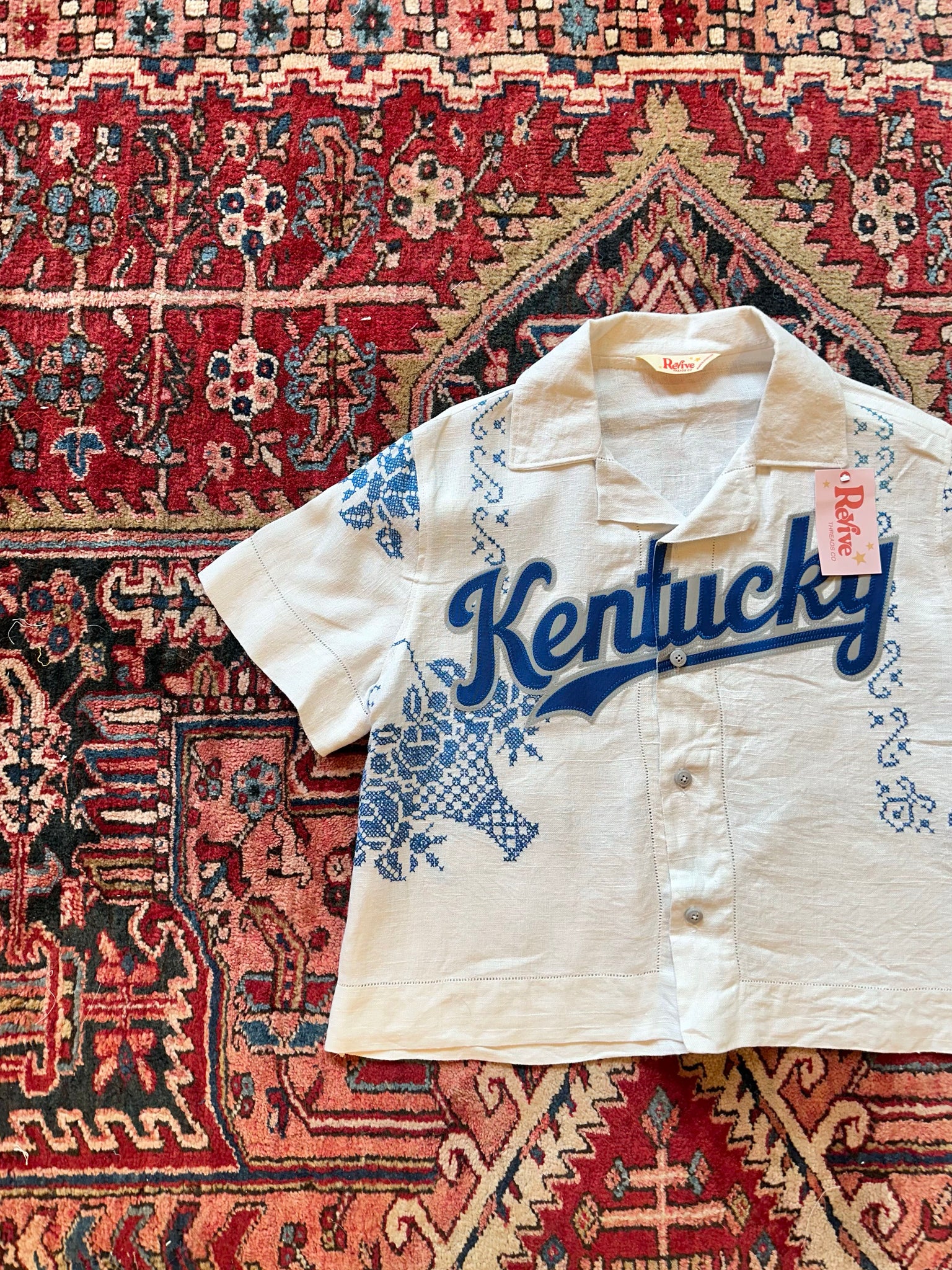 Kentucky Jersey made from a recycled tablecloth and baseball jersey.