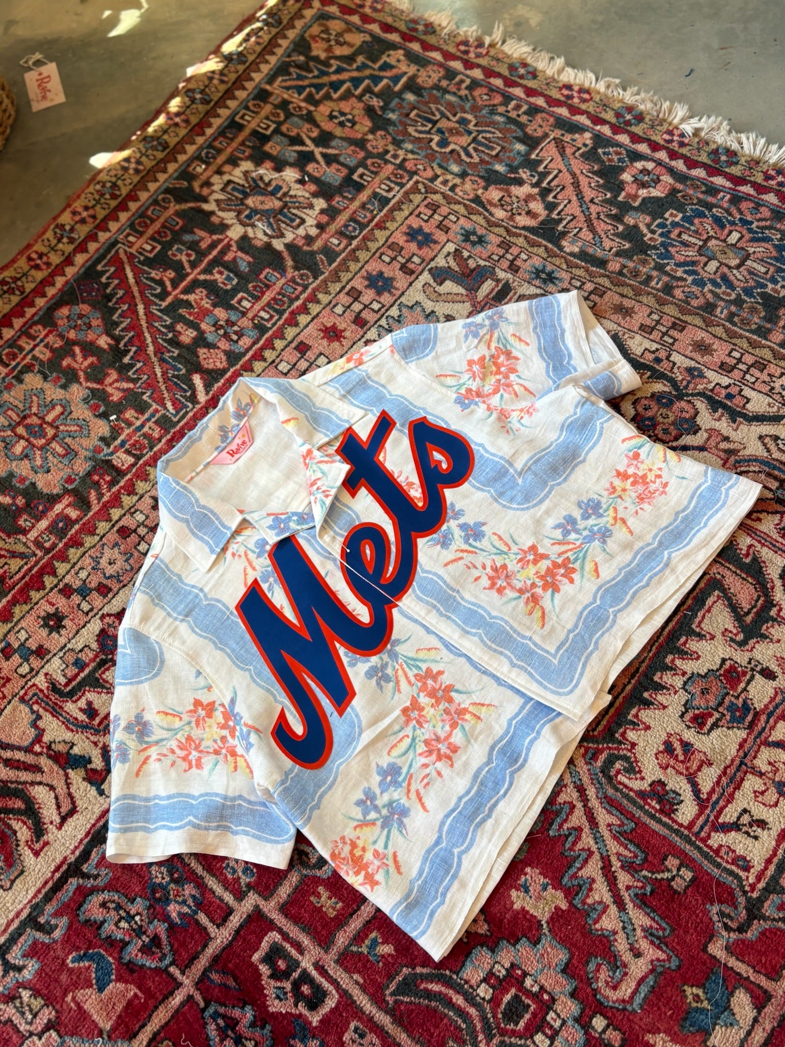Mets Jersey made from a recycled tablecloth and baseball jersey.
