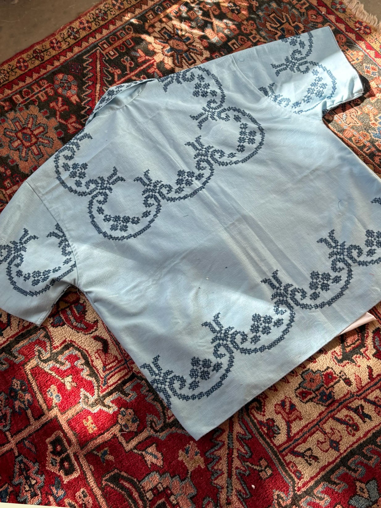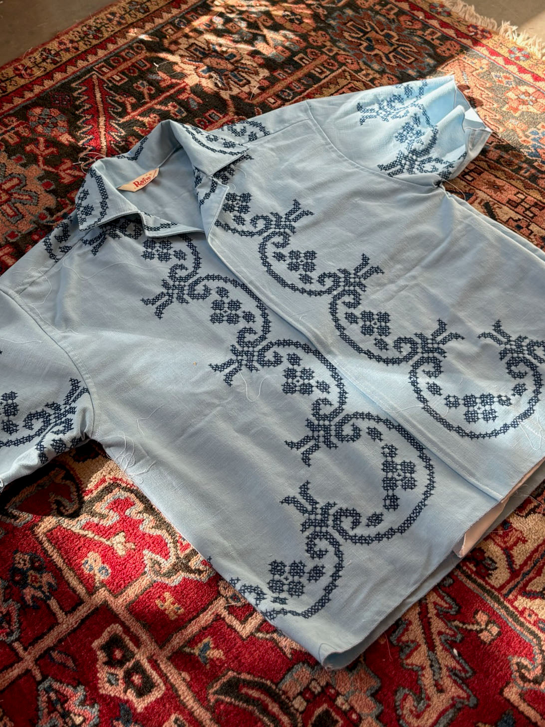 Customizable Jersey made from a recycled tablecloth and baseball jersey.