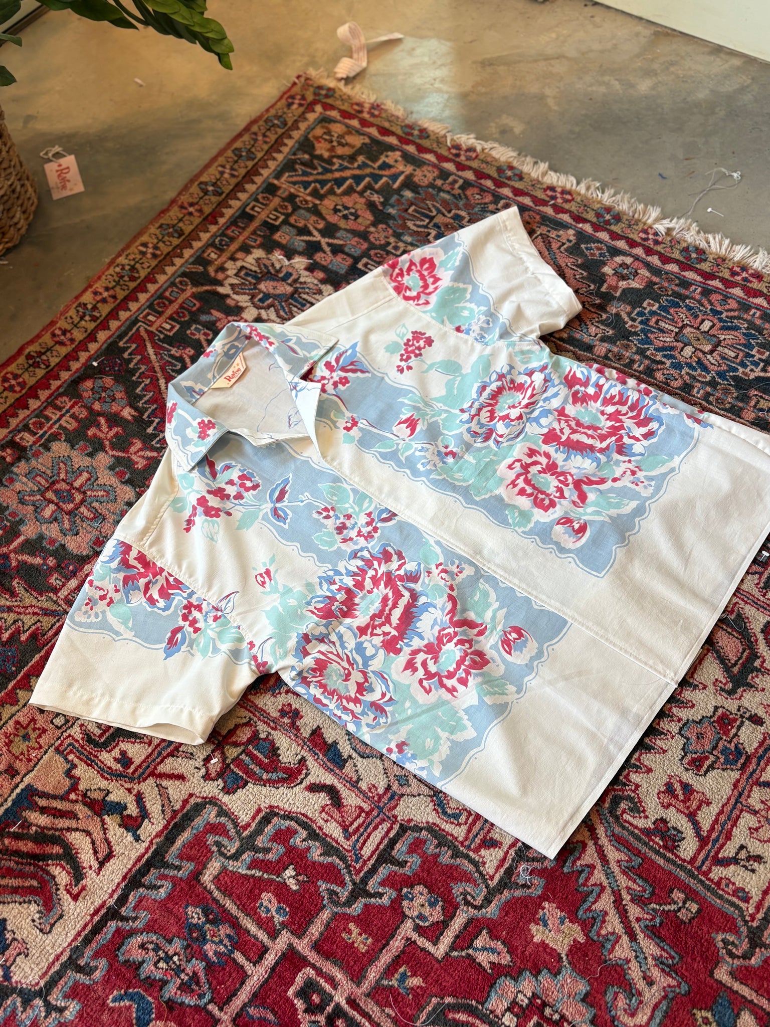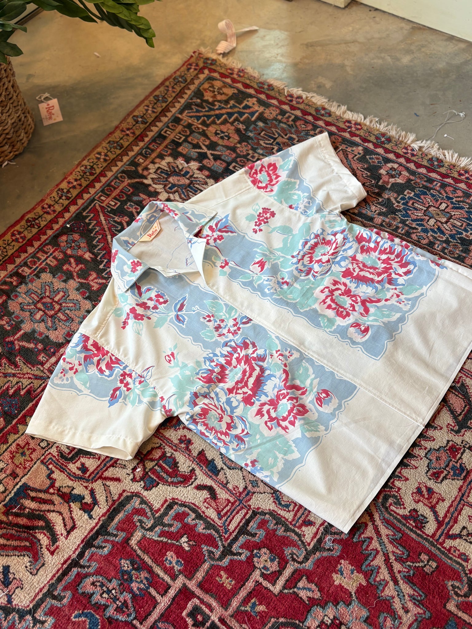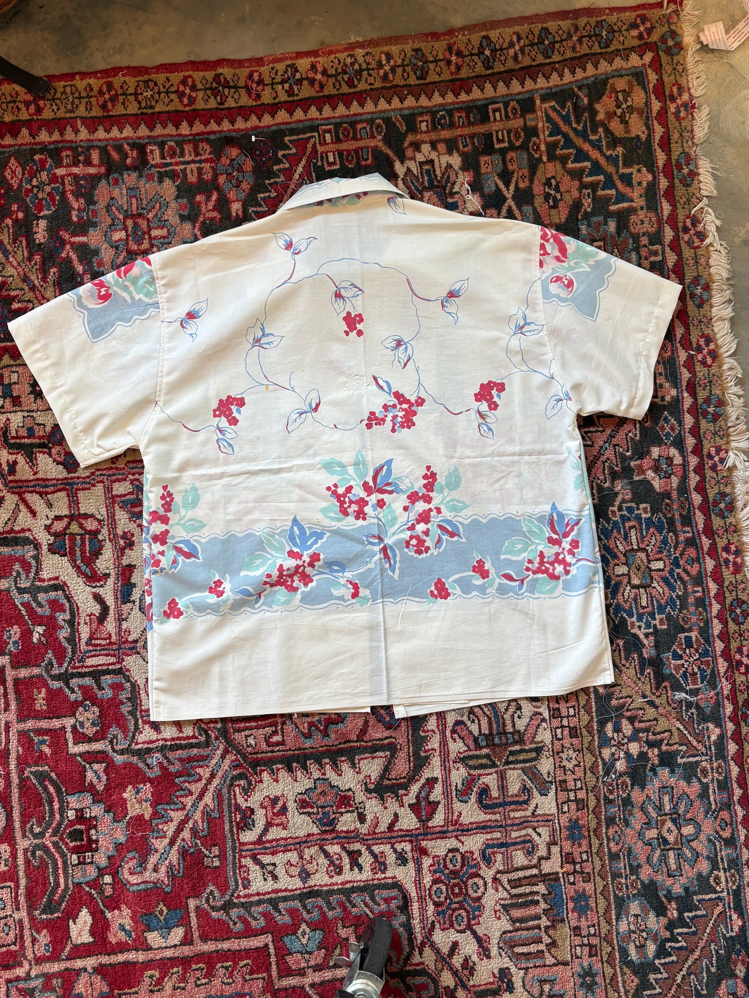 Customizable Jersey made from a recycled tablecloth and baseball jersey.