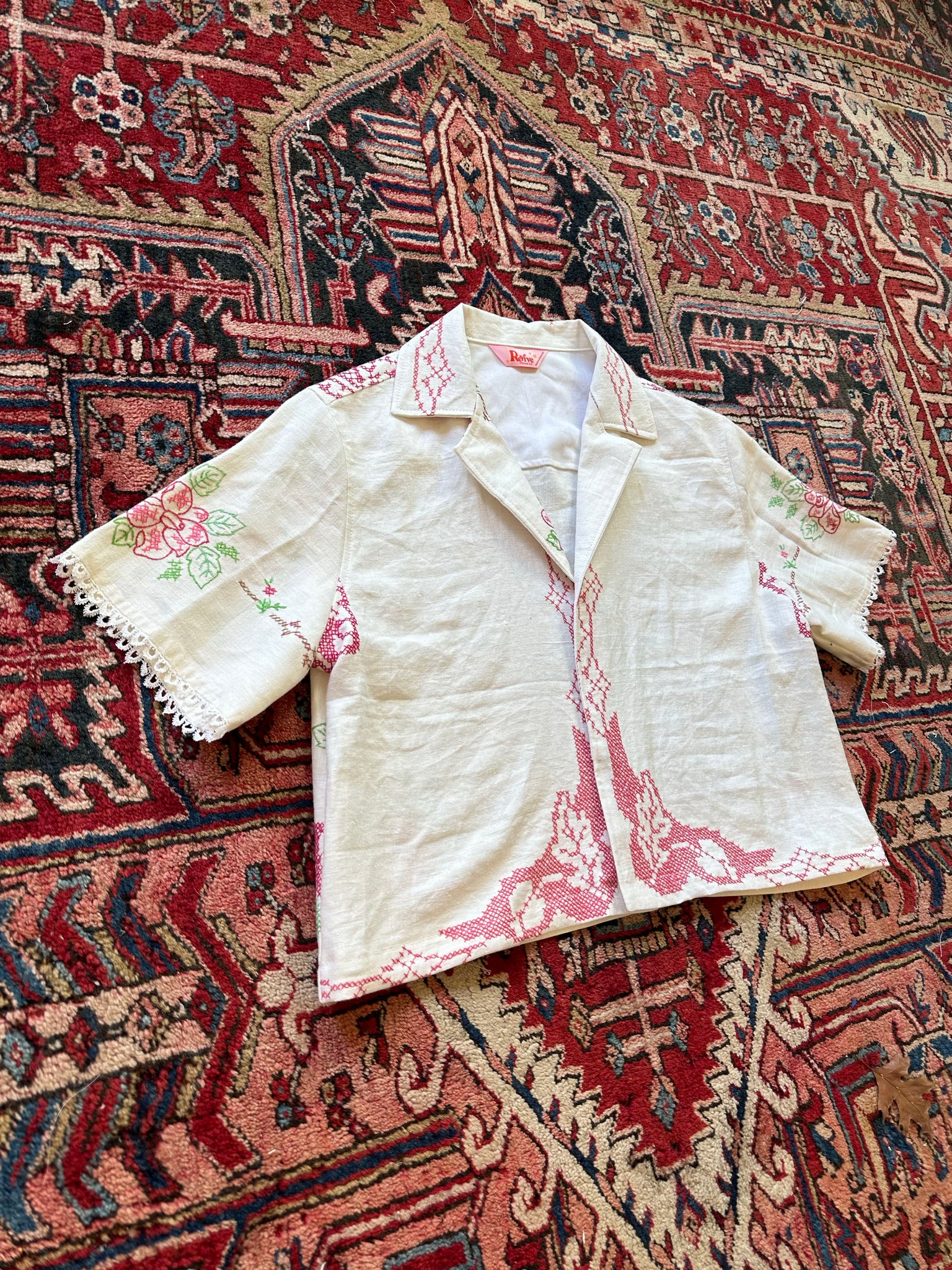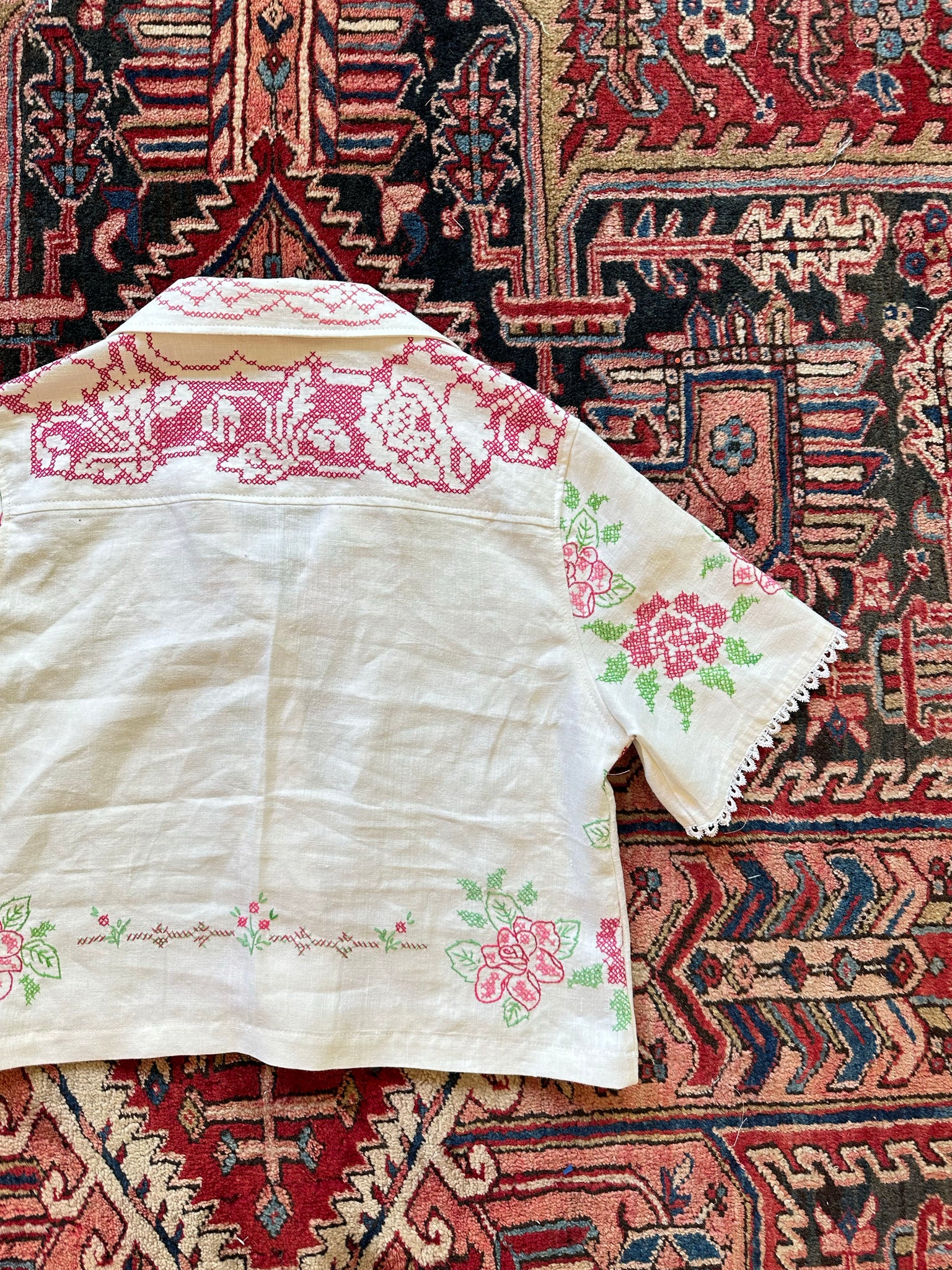 Customizable Jersey made from a recycled tablecloth and baseball jersey.