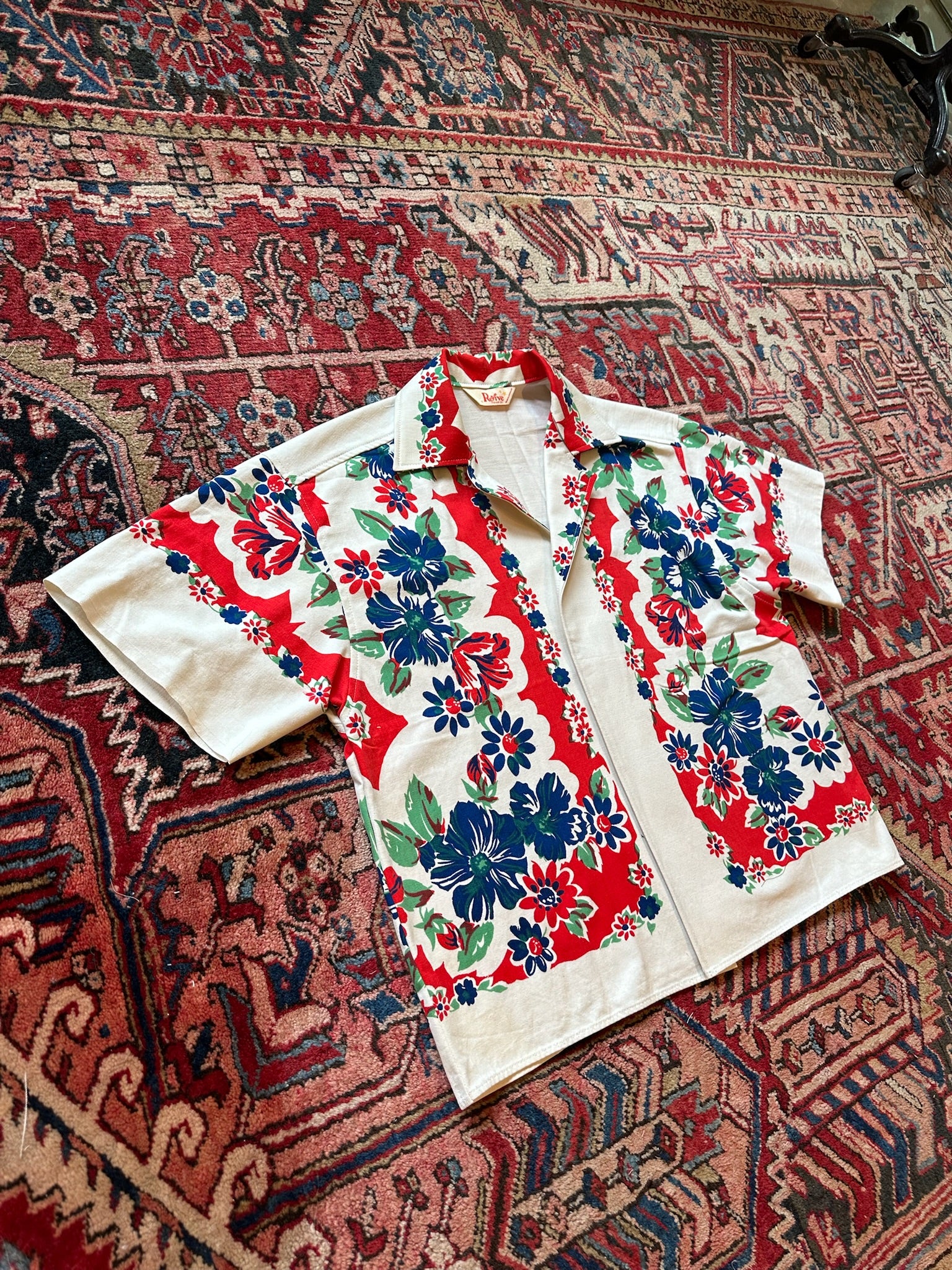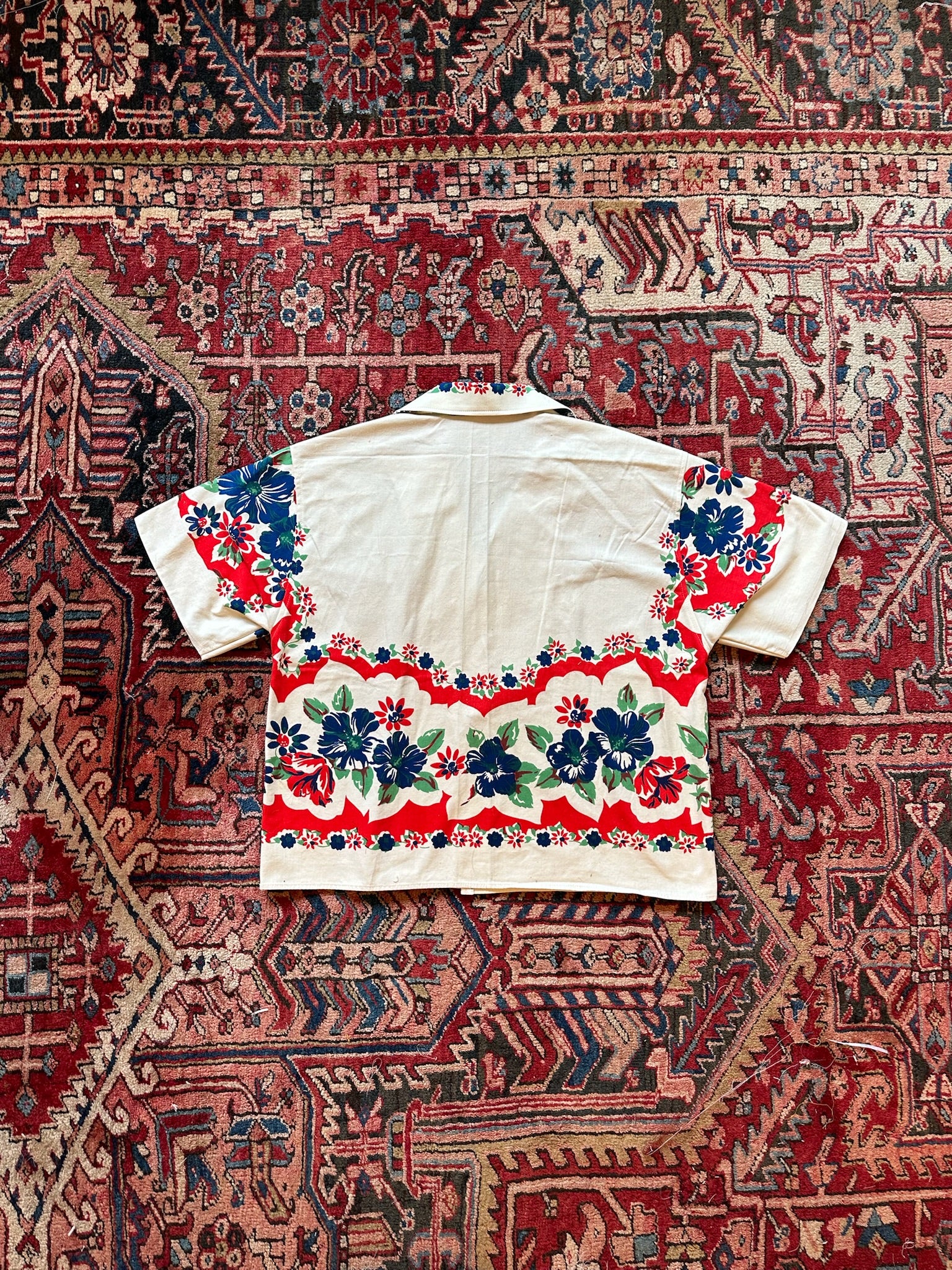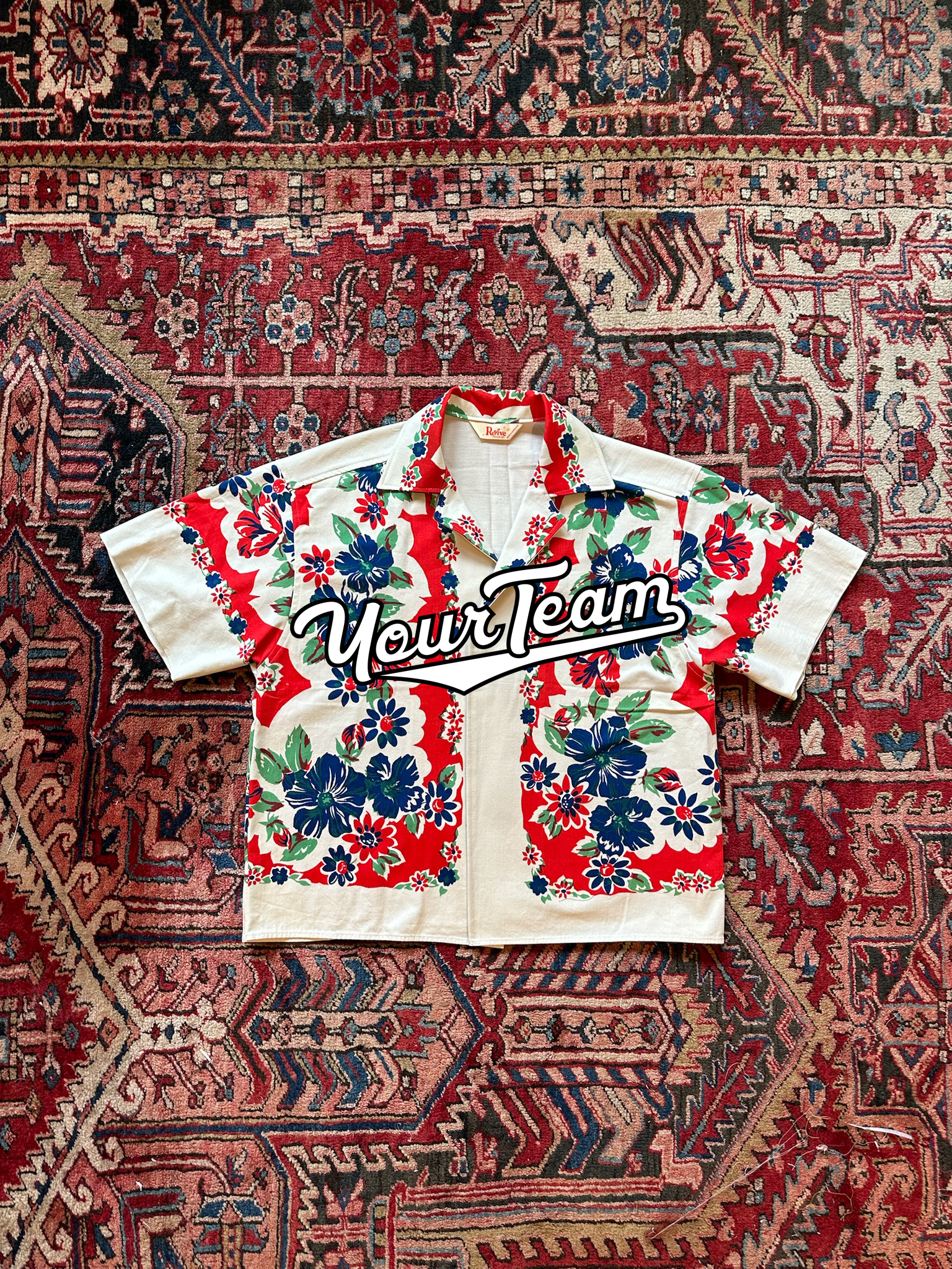 Customizable Jersey made from a recycled tablecloth and baseball jersey.