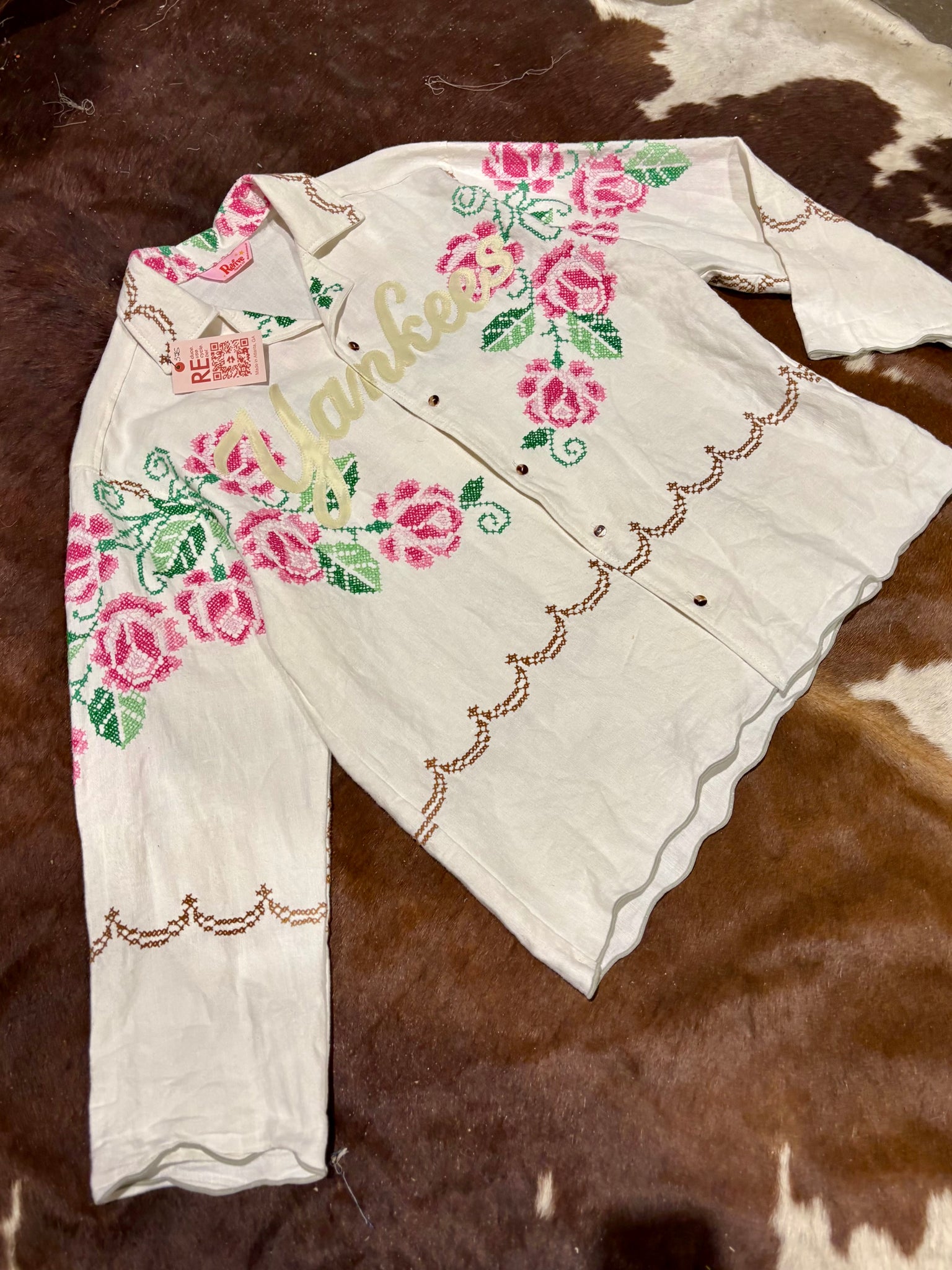 Dodgers Jersey made from a recycled tablecloth and baseball jersey.